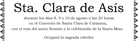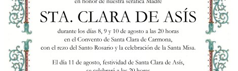 Os esperamos a los cultos que celebraremos en nuestro convento de Carmona en honor de nuestra santa Madre Clara de Asís.