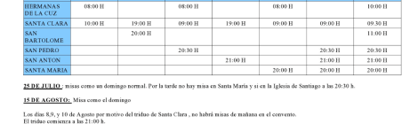 Cambio de horario de misas para el verano